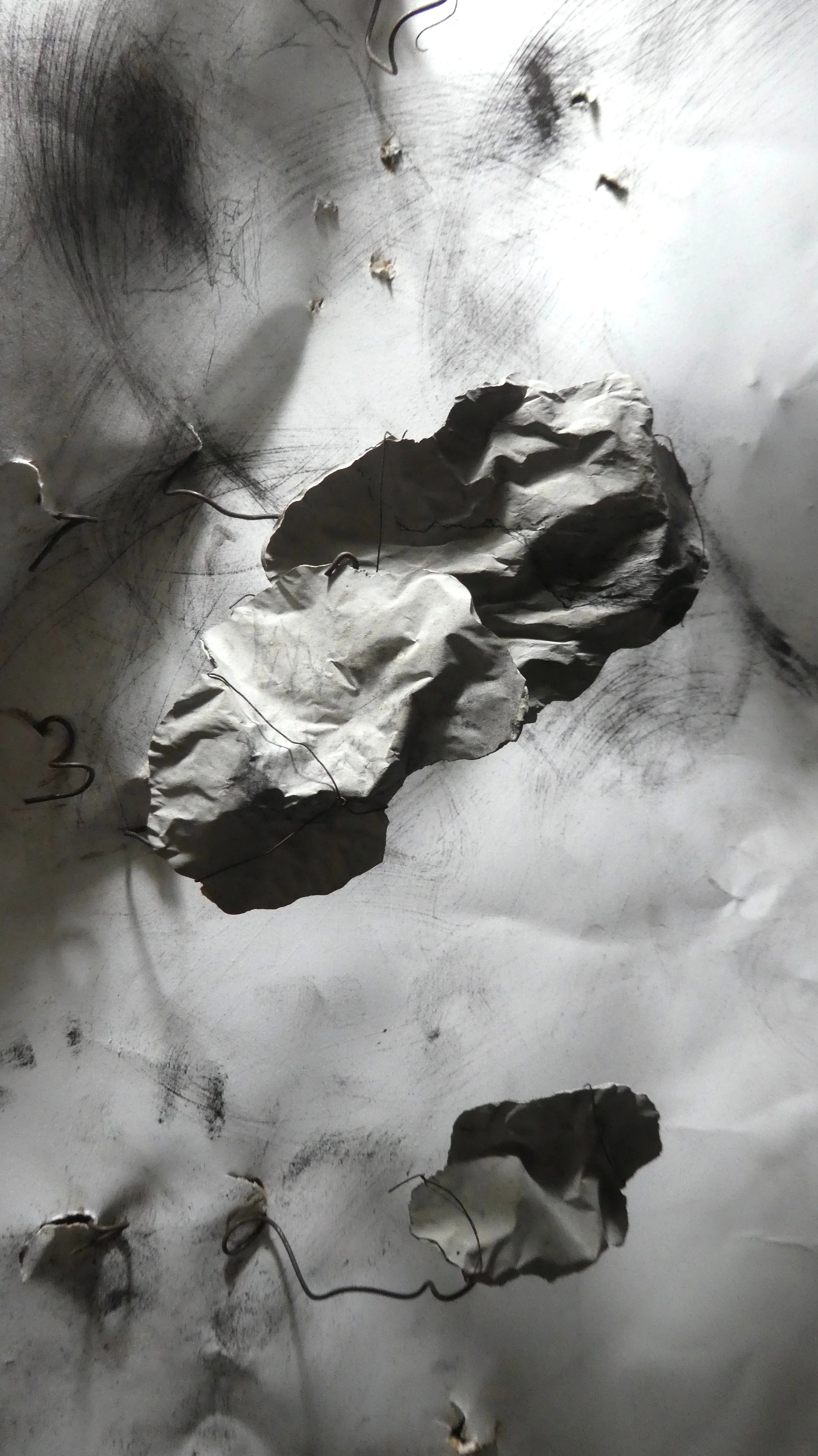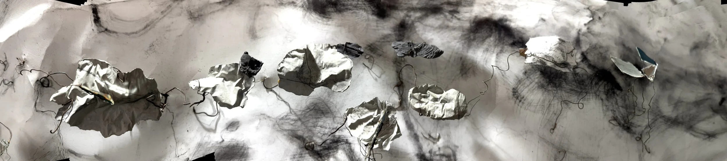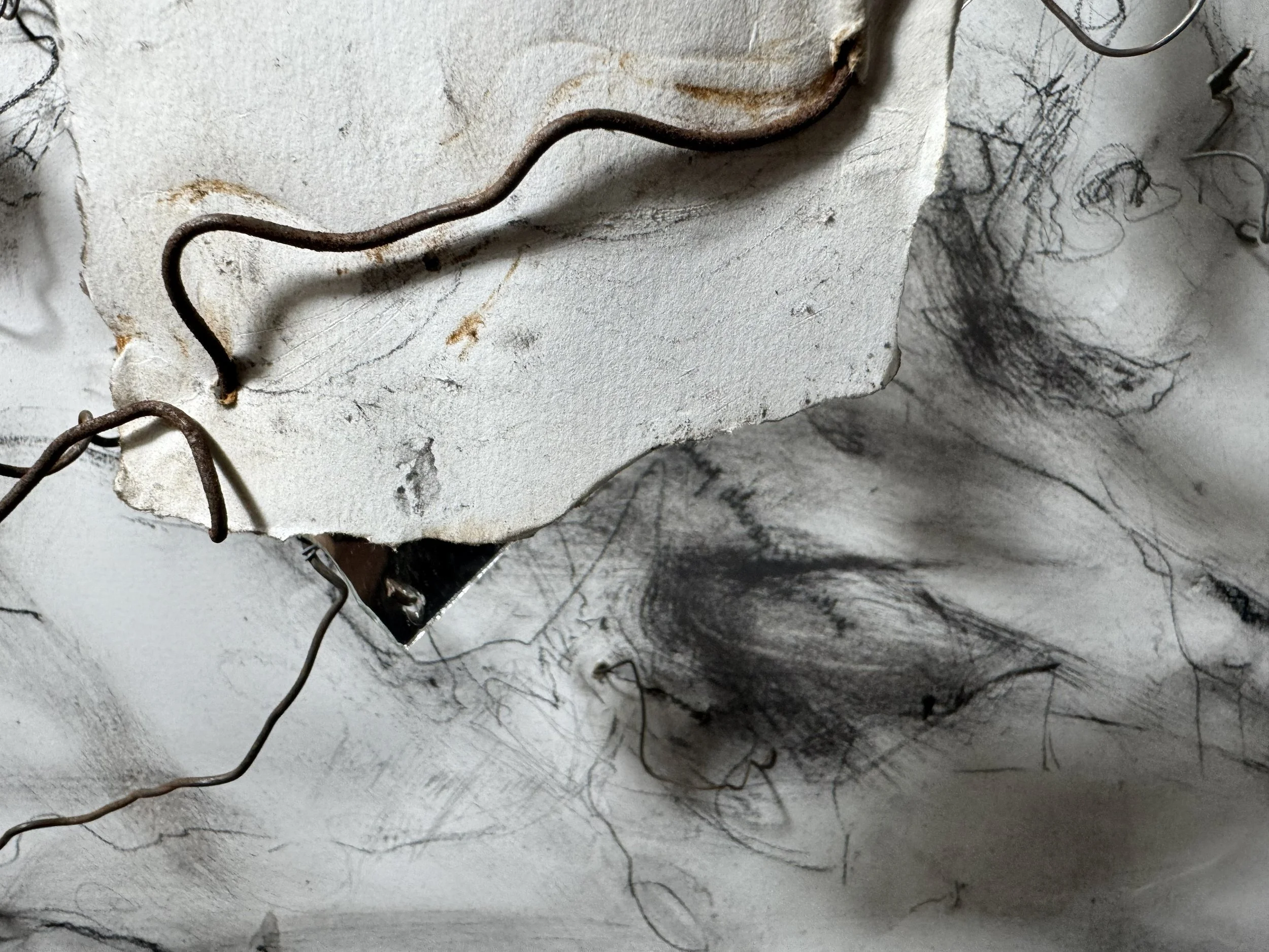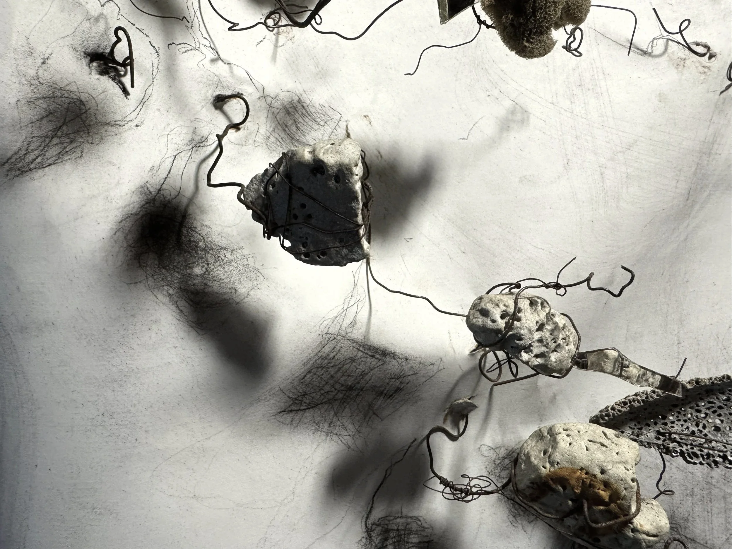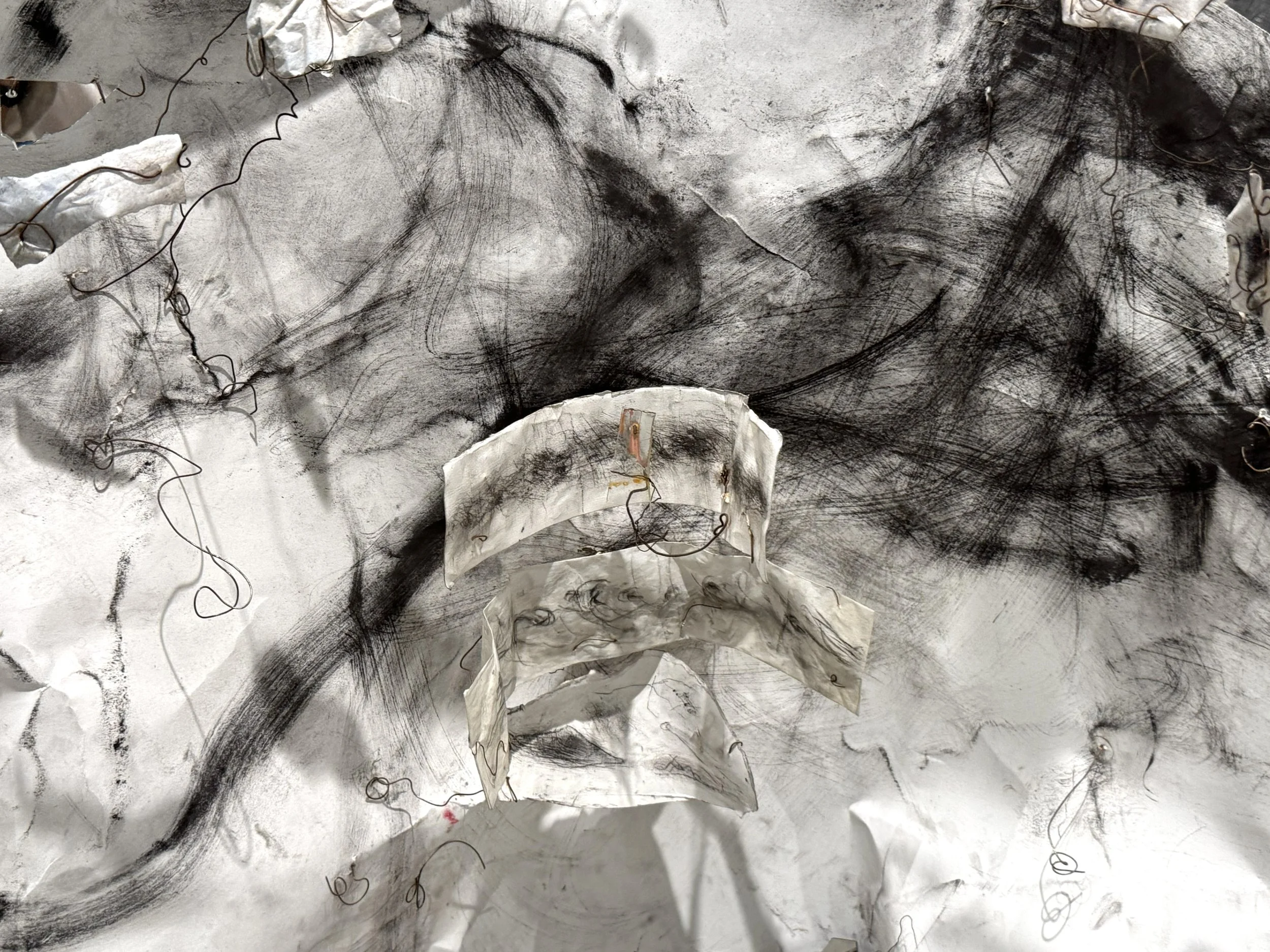 The seven-metre sketch is part codex, or archive, part field of relations. It marks correspondences in time – with spasms of hand and graphite over paper, or bend of wire, resonating with the suddenness of seismic eruptions.