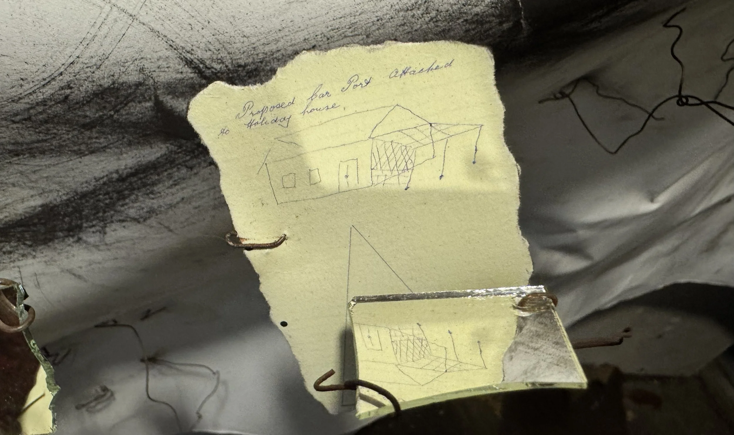 Old House by the Sea is part of the Old House series and is a work created specifically for the Works + Words Biennale 2026. The installation sketches the dynamic, seismically active Kaikōura canyon through hand-made sculptural ‘sketch creatures’ that respond to tiny ruptures in the fabric of the house - through its fractures, wear, use, incomplete memories.