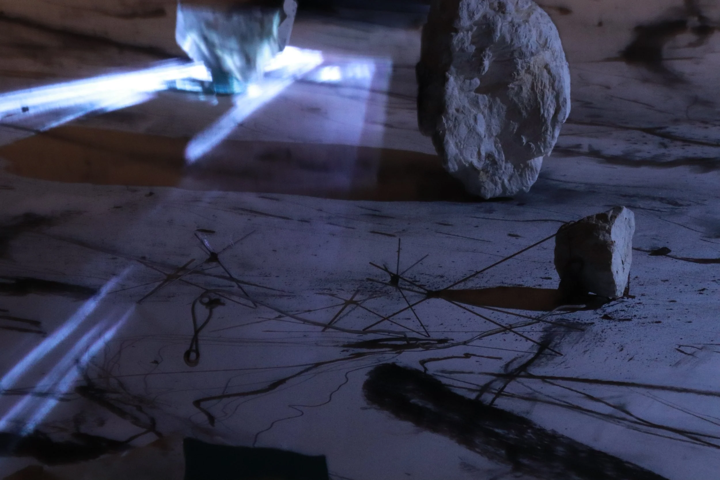 Old House Performative Section is part of the Expanded Drawing project, transdisciplinary research discovering ways of capturing intangible presences in natural phenomena. The research seeks to discover how architecture can be ‘made together’, drawn not just by humans but also planetary authors, crossing personal, human gestures with unpredictable planetary actions, such as vast seismic events.